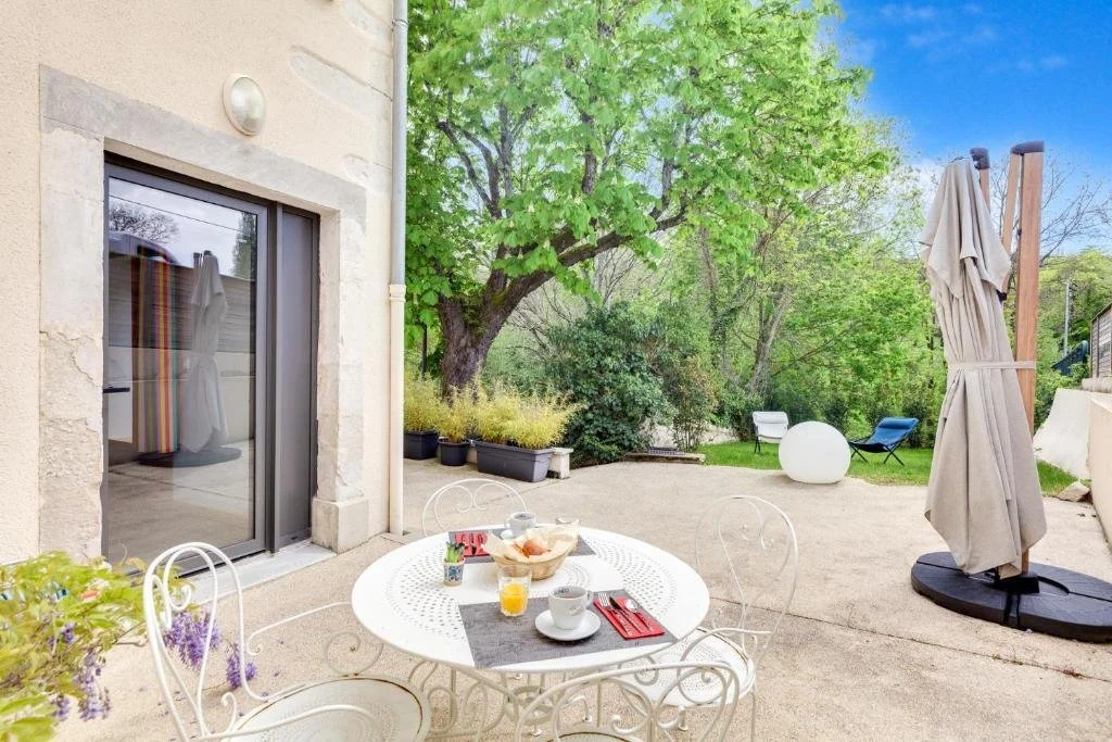 If you’d prefer to stay in the village itself (walking distance to cafés, bakeries, and the Saturday market) check out Maison De La Pra. It’s a charming townhouse-style B&B right in the center of Dieulefit, with just a handful of thoughtfully decorated rooms. Interiors mix vintage finds with modern touches, and there’s a small courtyard garden where you can sit with a book or an evening glass of wine.