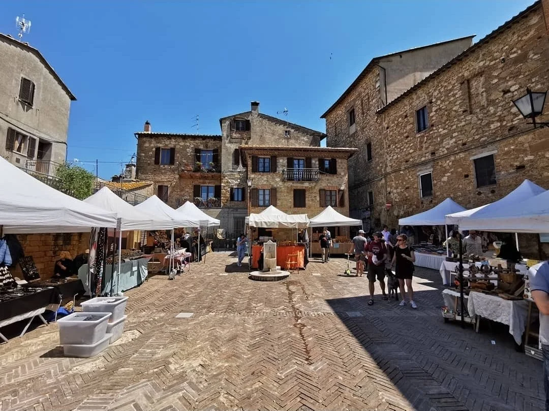 What makes this market so special is the setting. Just steps from the stalls, you can lean on the city walls and take in one of Tuscany’s most iconic views: rolling fields, neatly lined cypress trees, vineyards tumbling into the horizon, and the faint outline of Monte Amiata in the distance. Bring a picnic bag, because you’ll want to sit and snack right then and there.