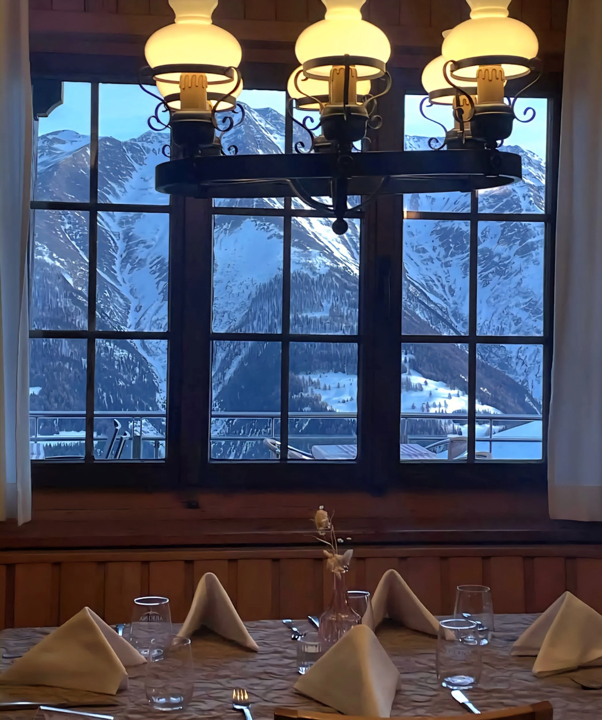 While technically a hotel restaurant, this place draws people for the views and the hearty, unfussy menu. It’s especially good for dinner if you want something cozy without being touristy. They do the mountain classics (raclette, schnitzel, etc.) but the setting is relaxed, and you’ll see local families and couples, not just guests.