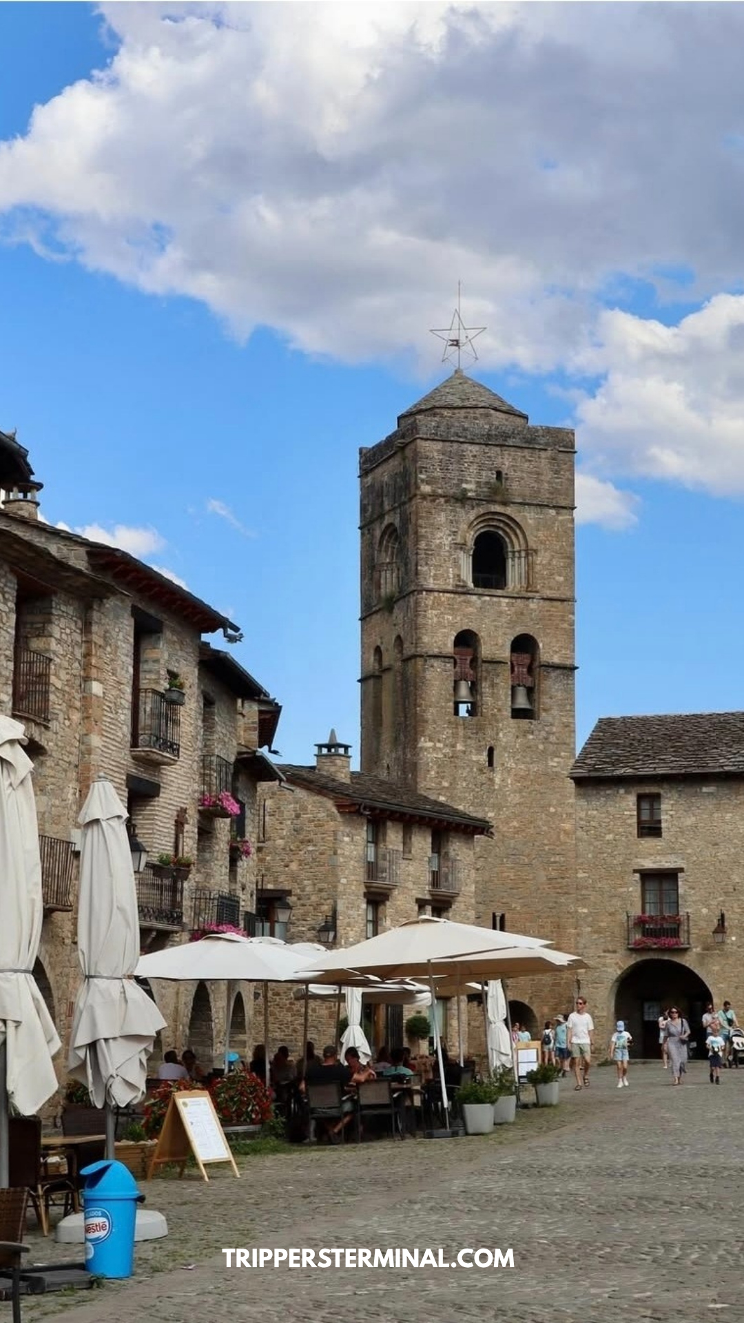 Aínsa is a cozy hilltop town where the Cinca and Ara rivers meet, it has that perfect mix of medieval charm and big Pyrenean views. The heart of the town is its main square (Plaza Mayor) a wide, cobbled expanse framed by stone arcades and rustic balconies. In the early morning, it’s so quiet you can hear your footsteps echo, and the air carries a chill that makes a hot coffee even more inviting.