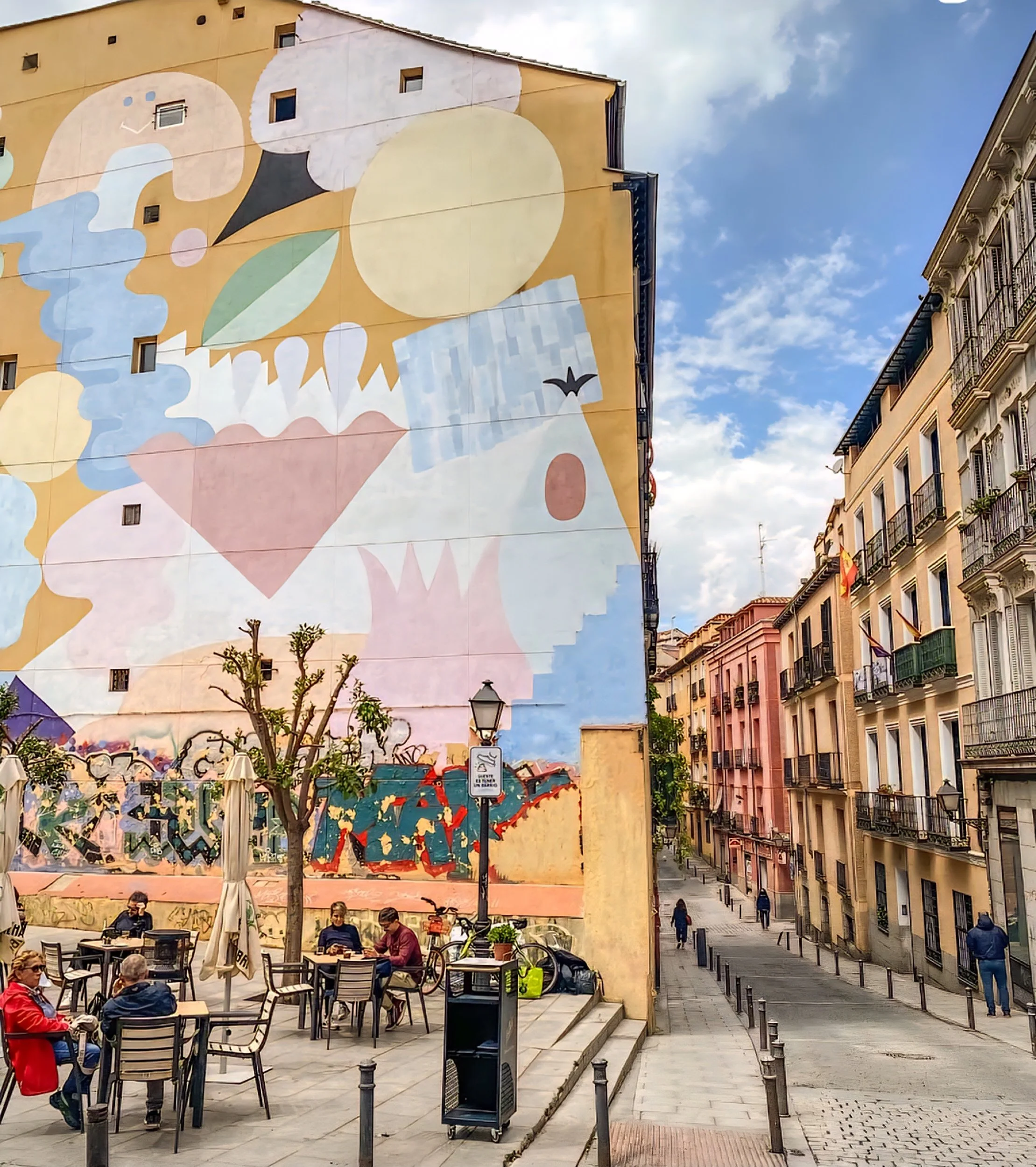 If you’re more drawn to a creative, multicultural side of Madrid, Lavapiés might be a better fit. This neighborhood is full of character (some streets are scruffy, others beautifully renovated) but the energy here is younger, more experimental, and deeply rooted in local life.