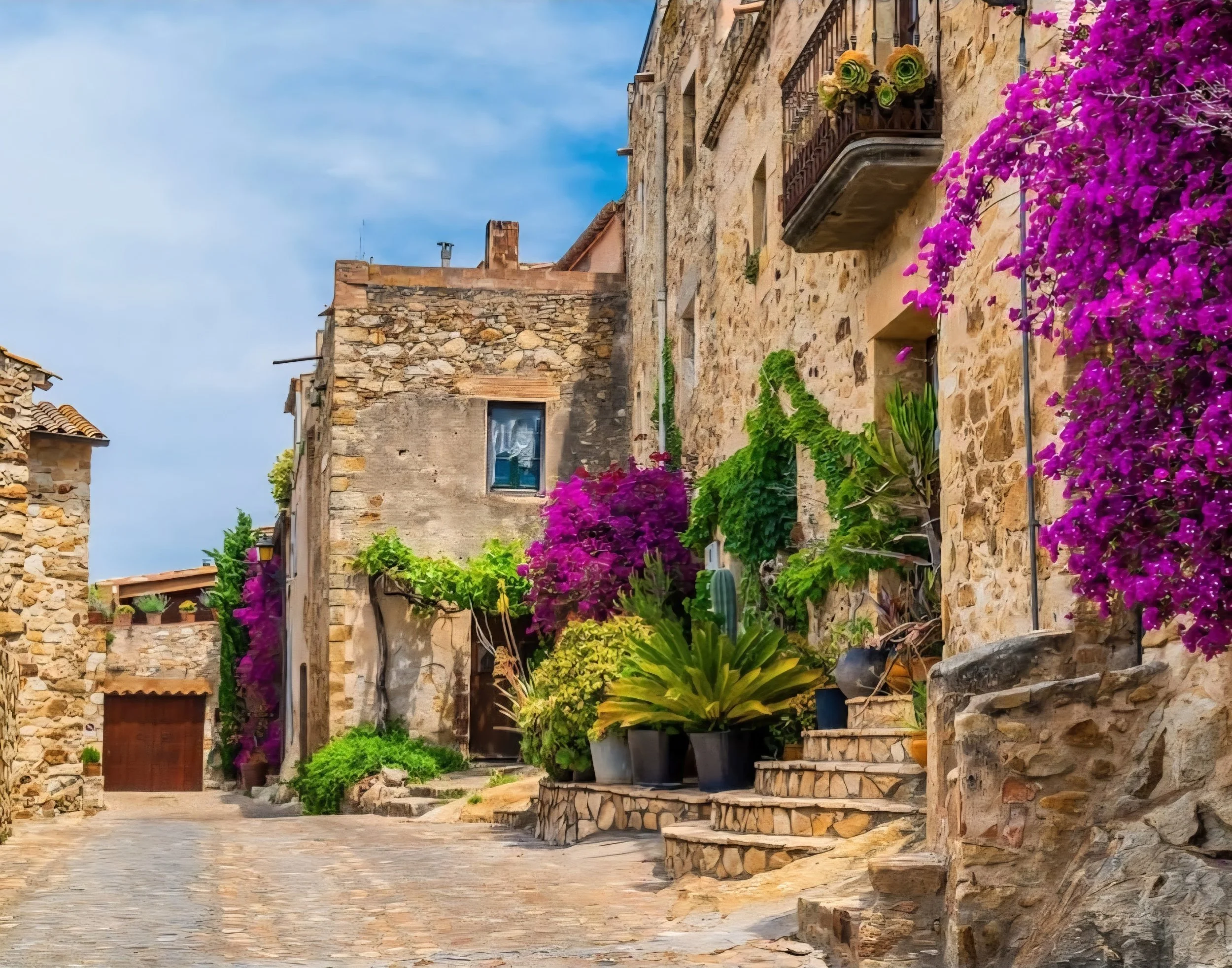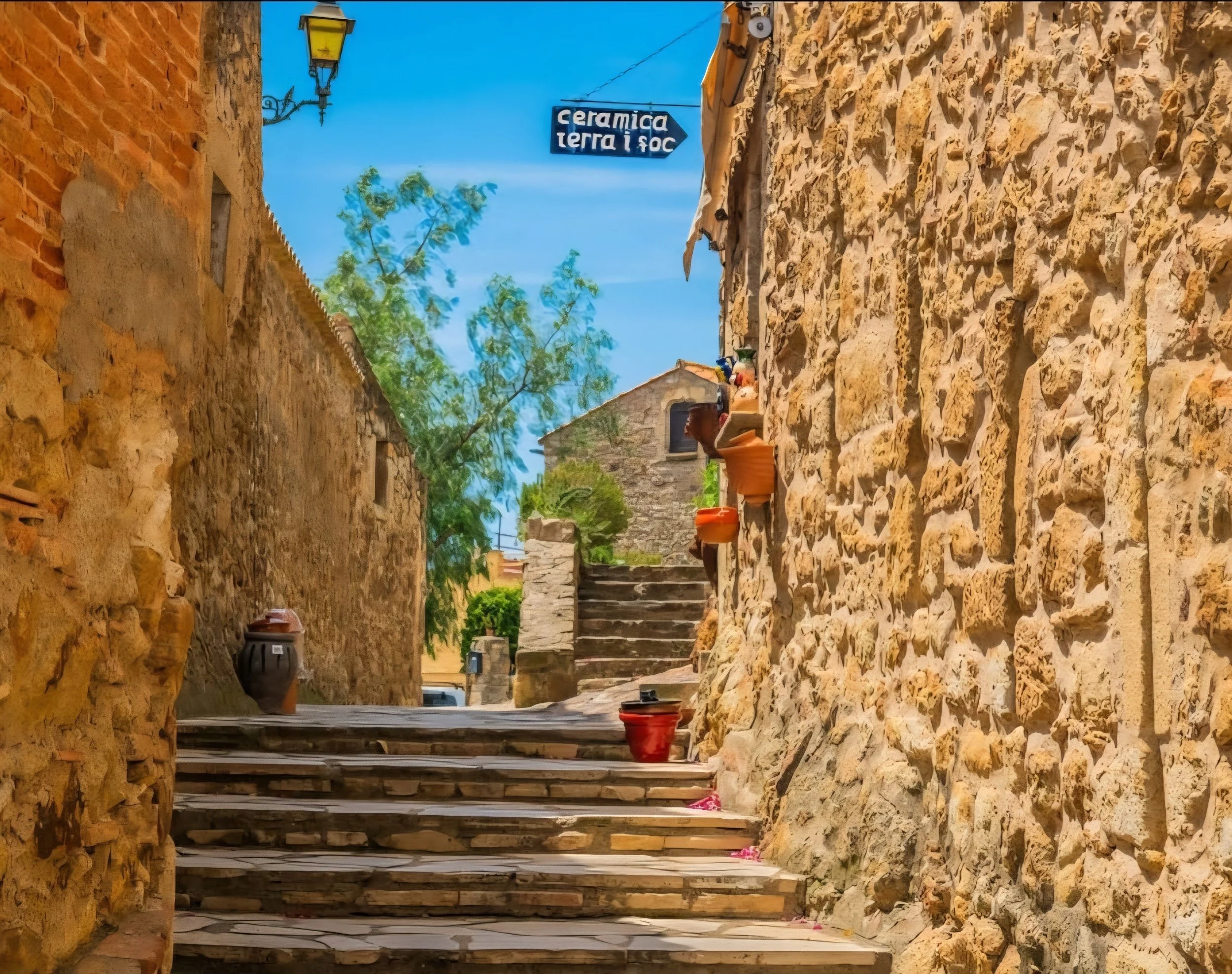 It’s a small medieval town just a bit inland from the Costa Brava, and honestly, it doesn’t look like much on a map. But in person? It’s calm in a way that’s hard to find these days. You park just outside the old centre, walk up the slope, and suddenly you’re surrounded by stone buildings, curved alleyways, and warm terracotta rooftops that feel like they’ve been there forever… because they basically have!