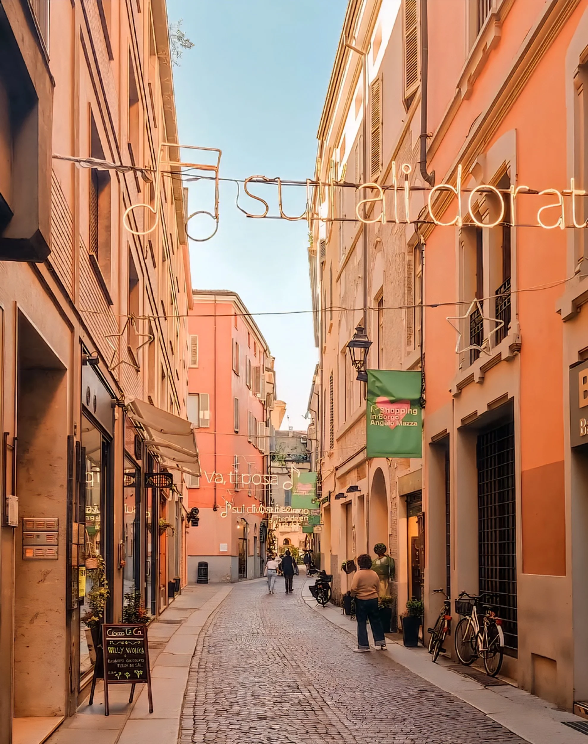 A short stroll brings you to Piazza Garibaldi, the real heart of the city. It’s not a dramatic square, but it tells you a lot about Parma: cafés with outdoor tables, families meeting up for coffee, and displays in the shop windows that are aimed at locals, not tourists. This is where you’ll feel the student energy too, with the university close by. If you sit for a while, you’ll see everything from suited office workers to teenagers heading home for lunch.