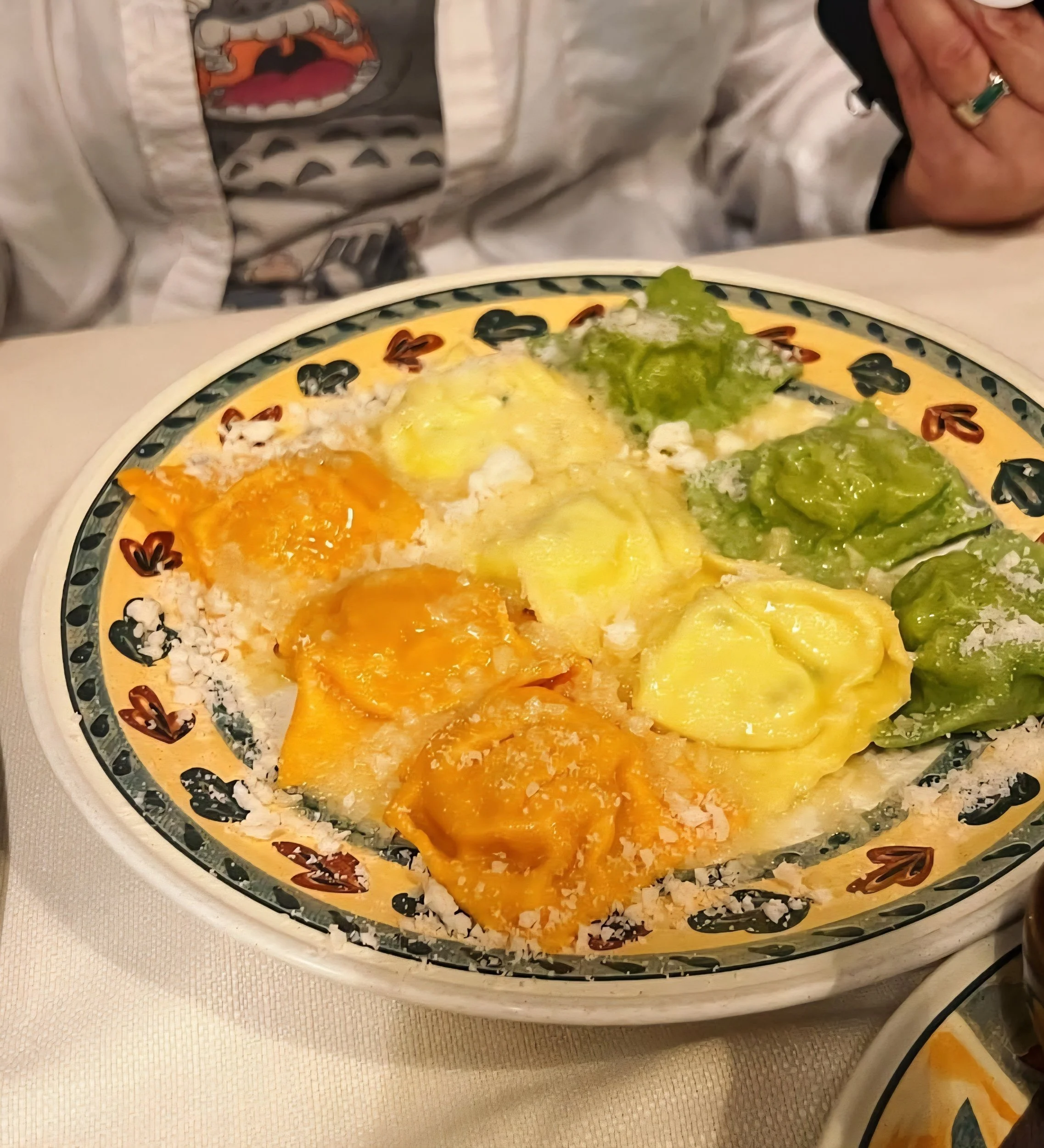 Tortelli di erbetta – pasta stuffed with ricotta, Parmesan, and herbs.