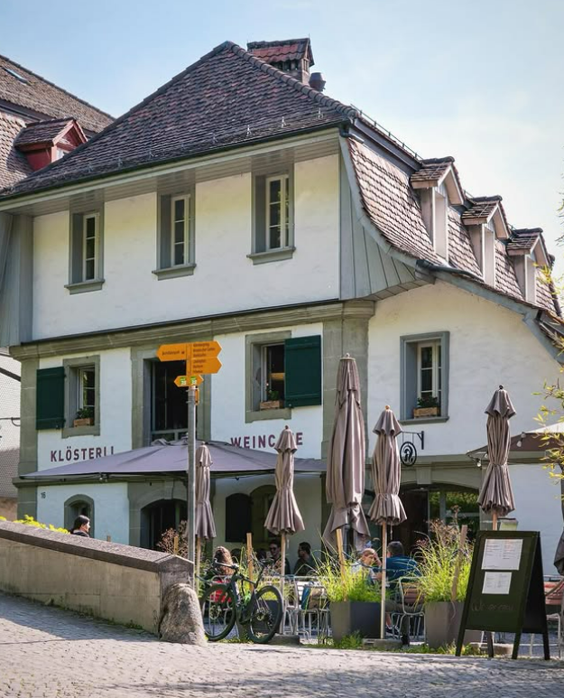 Hidden just off the main cobbled street, this small wine café has a local, slightly lived-in feel. The daily specials are simple and good - lentils, roasted veg, maybe something cheesy and warm if the weather’s turned. You can sit by the window or in the back and take your time. Wines come by the glass, mostly Swiss producers, (you should definitely give it a try!) and they’re happy to recommend something based on what you’re eating.