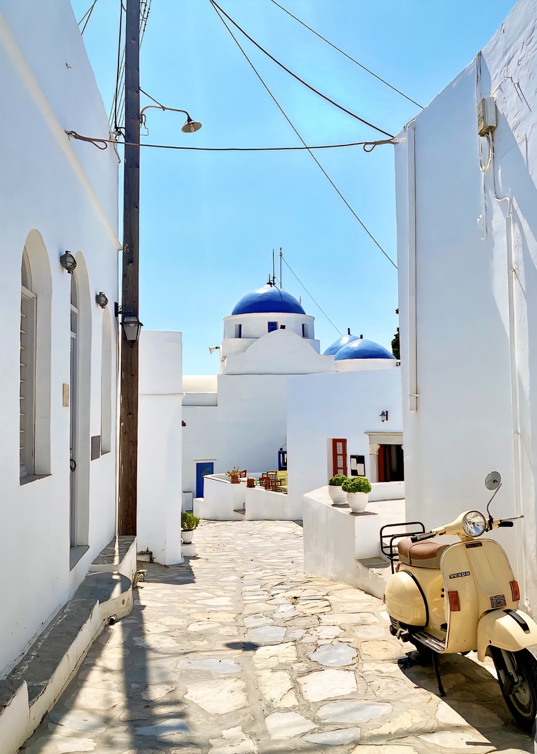 It’s a small island (only about 74 square kilometres) with no airport, no cruise ships, and no major towns. What it does have is a sense of balance: not too remote, not overdeveloped. You’ll find paved roads and proper bakeries, but also dirt tracks that lead to chapels on headlands and terraced hills still used for farming. Most of the villages sit inland, protected from older pirate raids but still close enough to the sea that nothing feels out of reach. Each one has its own tone… Artemonas is elegant, Apollonia is social, Kastro is steeped in history, Faros and Vathi are simple and quiet by the sea.