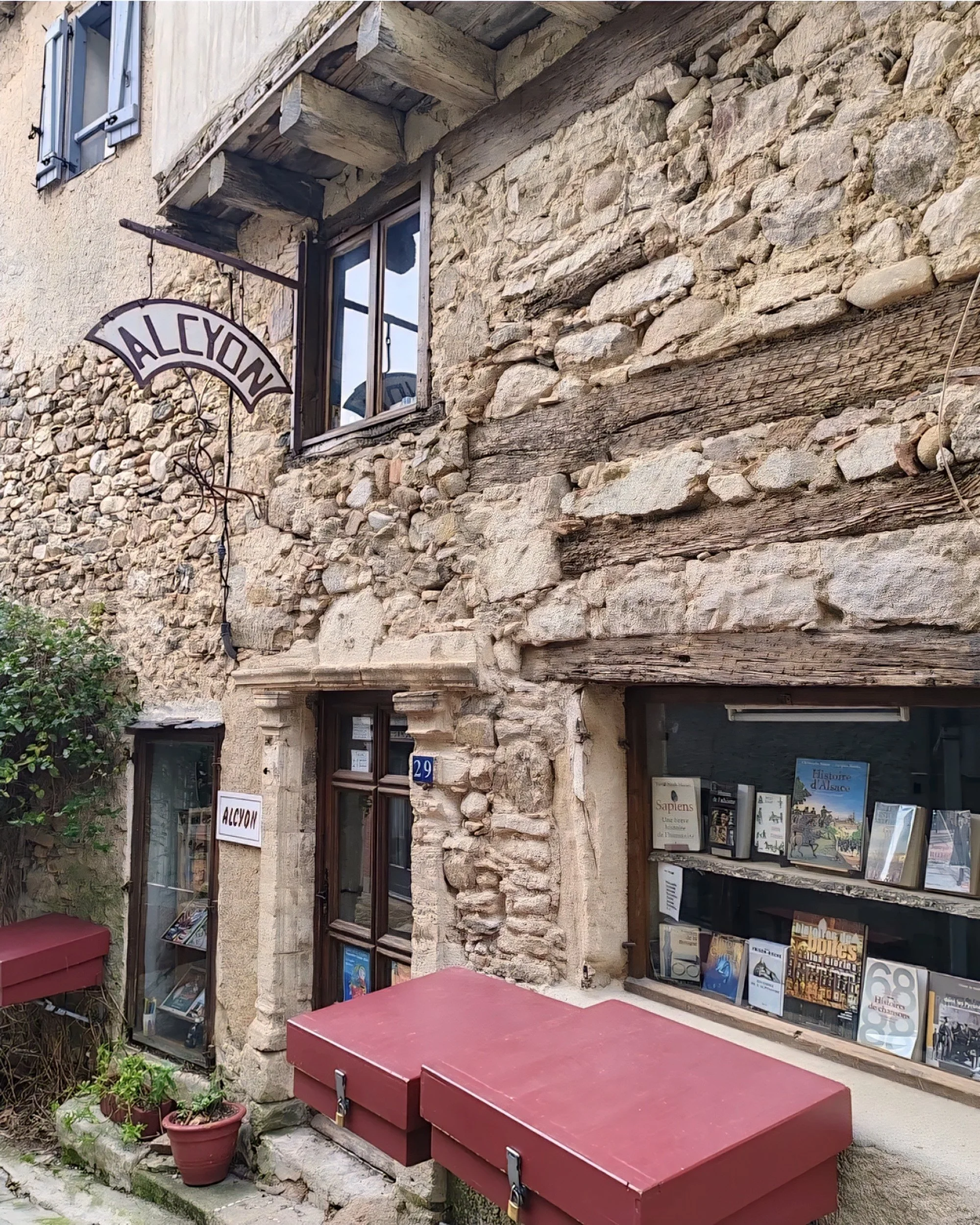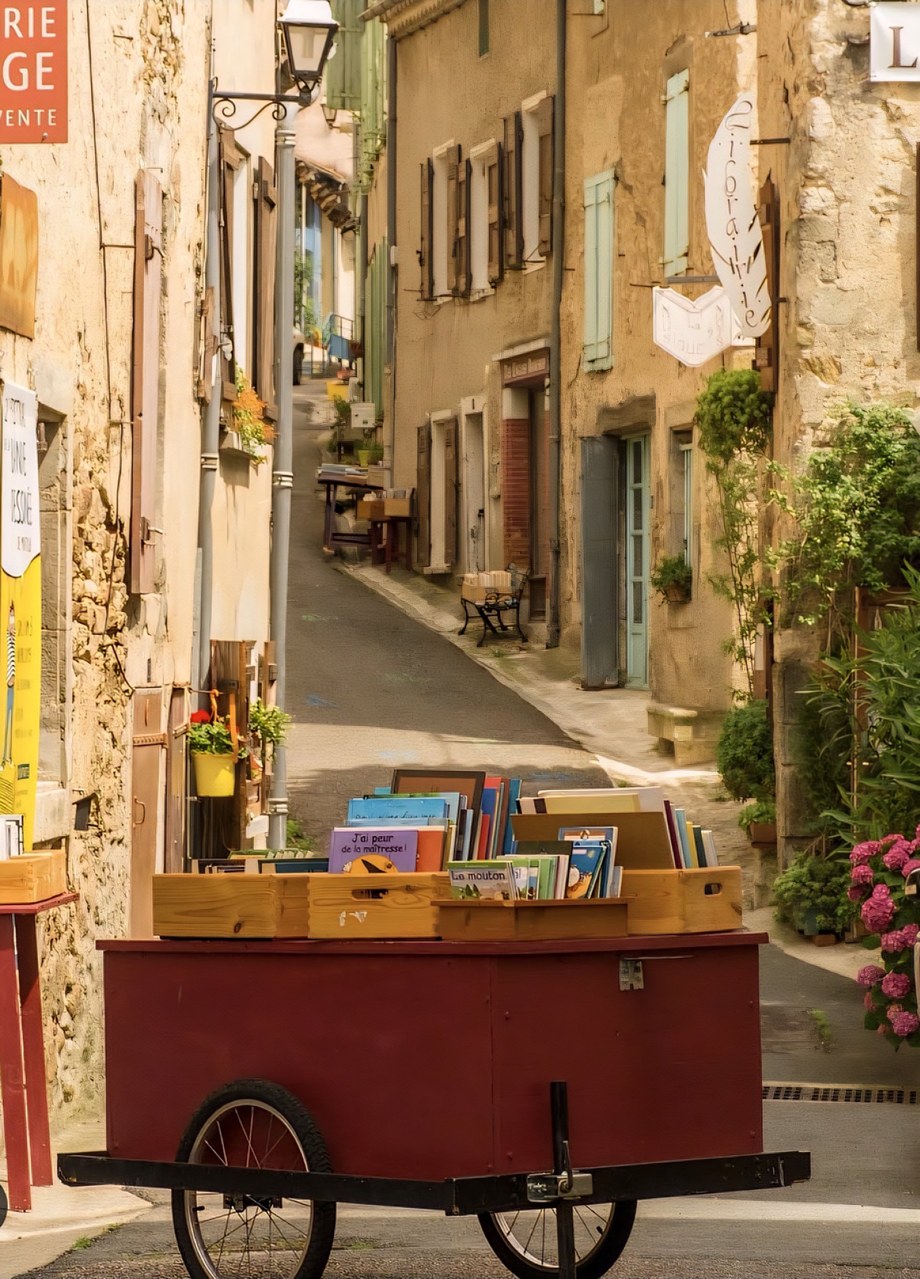 The shops are set in old stone buildings. Some are tucked behind heavy wooden doors. And others open right onto the narrow lanes. There’s no stress, no pressure to buy (however, you will probably want to), and half the joy is just flipping through whatever catches your eye. You’ll find everything from French paperbacks to rare art books, old postcards, children’s classics, and shelves that don’t seem alphabetised but somehow make sense.