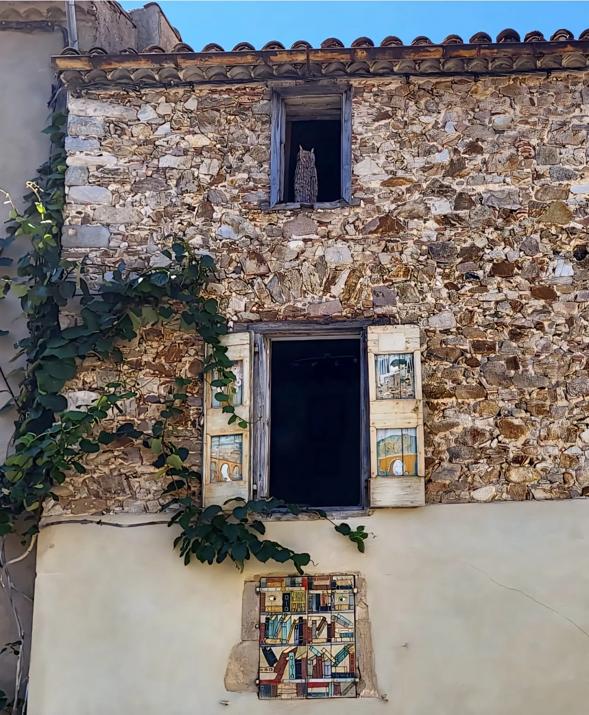 The architecture is typically Languedocien, which means soft, honey-toned stone houses with thick walls, faded blue and green shutters, and terra-cotta rooftops that have seen many summers. Most homes are two or three stories tall, with small wooden doors and windows that look onto narrow cobbled lanes. There’s very little uniformity (some buildings lean, some steps are chipped) but that’s what makes it feel so alive.